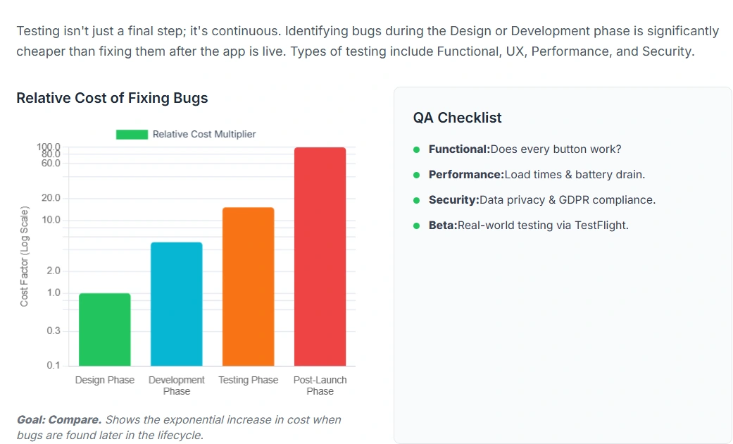 - User Acceptance Testing (UAT): This is the final gate. Real users (or client stakeholders) test the app to ensure it solves the business problem.